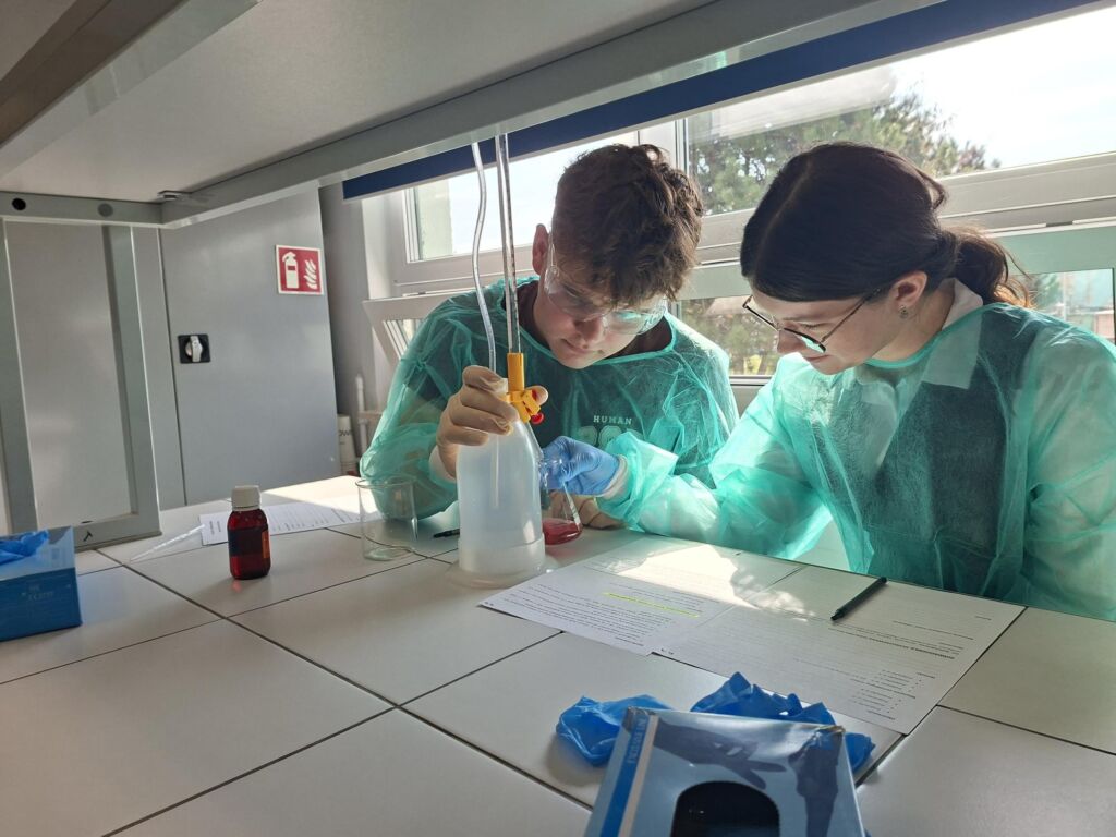 Nie zabrakło również zadań rozwijających precyzję pracy laboratoryjnej, takich jak miareczkowanie z użyciem wskaźnika.