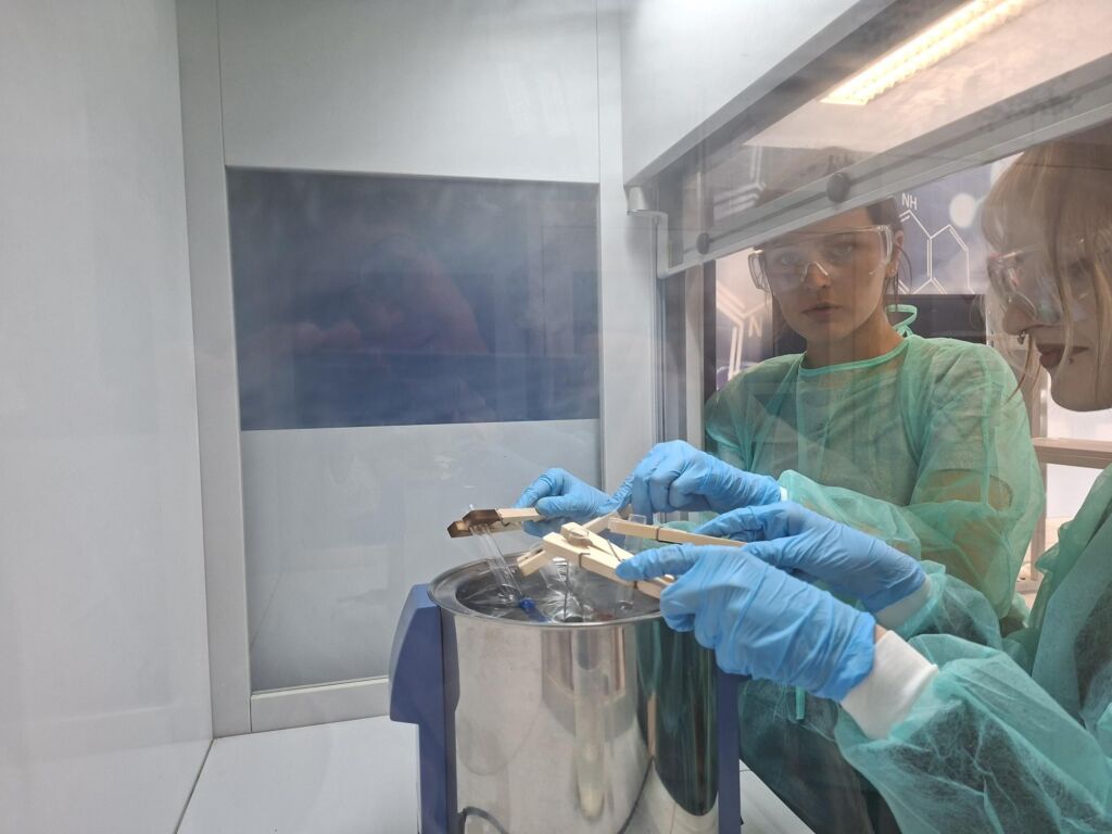 19 marca 2026 roku mieliśmy przyjemność poprowadzić warsztaty chemiczne dla młodzieży z Zespołu Szkół Ogólnokształcących im. Jana Pawła II w Pawłowicach. Spotkanie rozpoczęło się krótkim wprowadzeniem, podczas którego przedstawiliśmy profil działalności naszej jednostki, przypomnieliśmy zasady bezpieczeństwa obowiązujące w laboratorium oraz omówiliśmy plan zajęć.